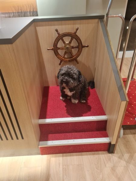 Nun ist er auch noch Captain: Der Herr Dr. Fussel. Ihm gefällt es außerordentlich gut. Das Atlantic Hotel ist super hundefreundlich, er und andere Vierbeiner fühlen sich wohl.