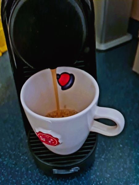 Für uns erstmal Kaffee. First things first. Die Kaffeetasse trägt zur Sicherheit eine Pudelmütze – wir sind noch unschlüssig, was wir mit dem Tag anfangen. Hausfrauentag am Montag nach dem Motto das Doofe zuerst oder einen Ruheständler Happy on Mondays Ausflugstag?
