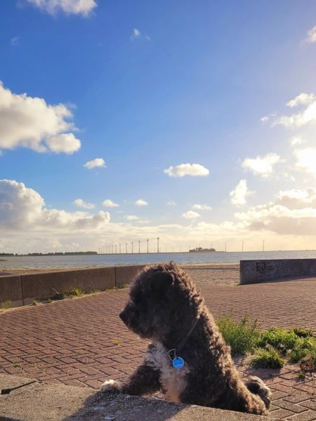 Wasser reizt ihn überhaupt nicht, an den Seen steckt er mal vorsichtig die Pfoten rein, aber das war es dann auch. Jagdinstinkt ist auch so gut wie gar nicht vorhanden. Aber auf dem Boot an sich ist er gerne. Der größte Anteil in seinen Genen ist portugiesischer Wasserhund, da müsste er eigentlich anders veranlagt sein. Ich hab schon die Theorie aufgestellt, dass er deswegen ausgesetzt wurde in seinem früheren Leben. Weil er sich für die Aufgaben eines portugiesischen Wasserhunds überhaupt nicht eignet. Aber als Wachhund ist er super :))