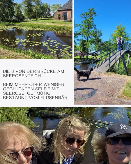 Vor dem aber stand erfreulicherweise ein doch. Unsere zweite Station war das bei uns hoch im Kurs stehende Earnewald im Nationalpark alde Feanen, dem verzauberten Feenreich. Dort trafen wir uns mit den Hamburger Freunden Gina und ihrem Mann sowie ihrer friesischen Freundin. Wie immer war es ein schönes, lustiges, harmonisches, beglückendes Treffen. Wir kennen uns viele Jahre. Erst virtuell, dann reell – und so blieb es. Virtuell haben wir dauernd Kontakt und auch im sogenannten real life haben wir es über die Jahre immer wieder mal geschafft.